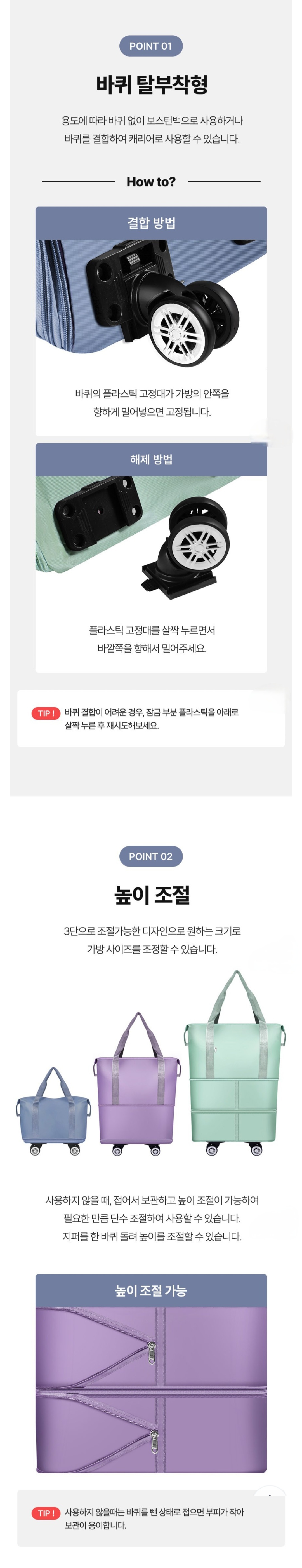 바퀴형 3단 접이식 캐리어 보스턴백