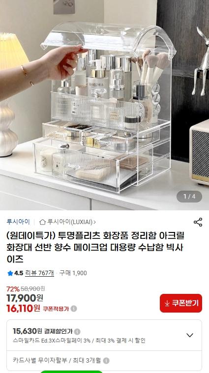 [지마켓] 투명 화장품 정리함 72% 할인중 (16,110원/무배) > 국내핫딜