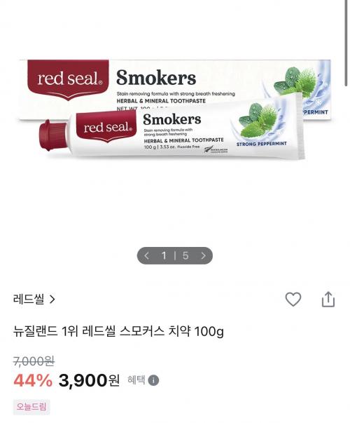 레드씰 치약 2종 오늘의특가 할인해서 개당 3,900원 나옵니다