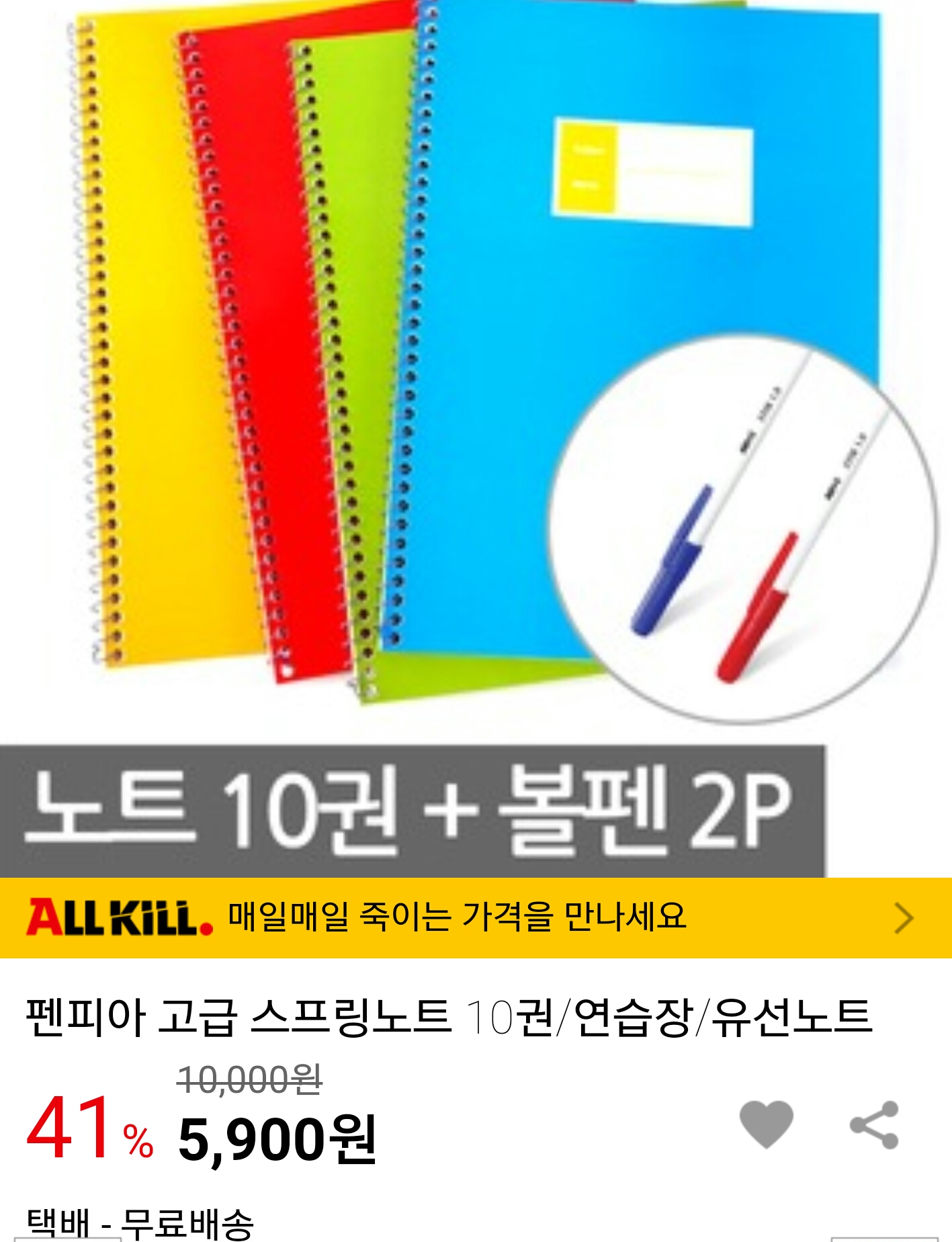 [옥션] 펜피아 스프링노트 10권/연습장/유선노트 (5900/0) > 국내핫딜