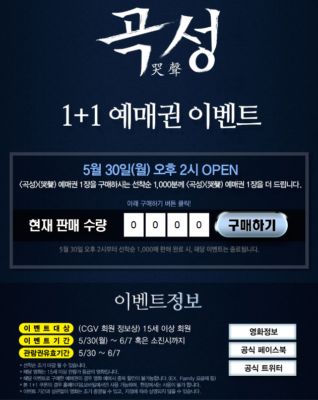 [CGV] 곡성 1+1 예매권 (9,000/무료) > 국내핫딜