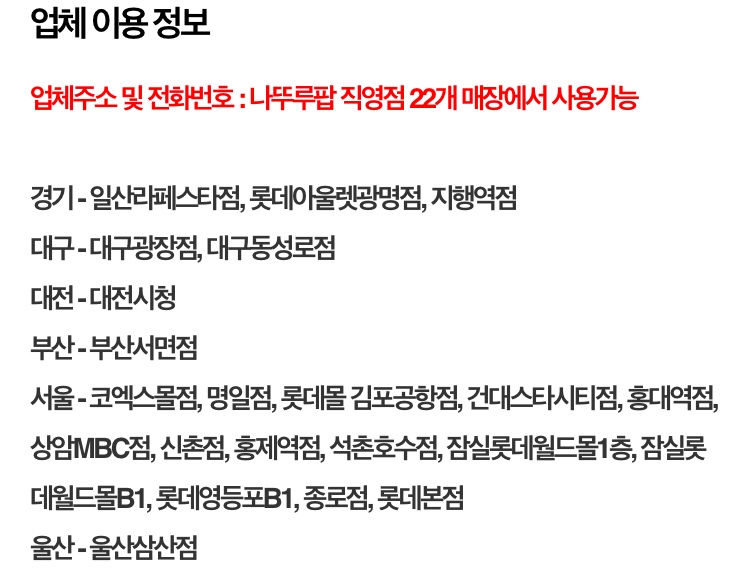 네 22개 직영점에서만 사용사능합니다(이미지참조) |