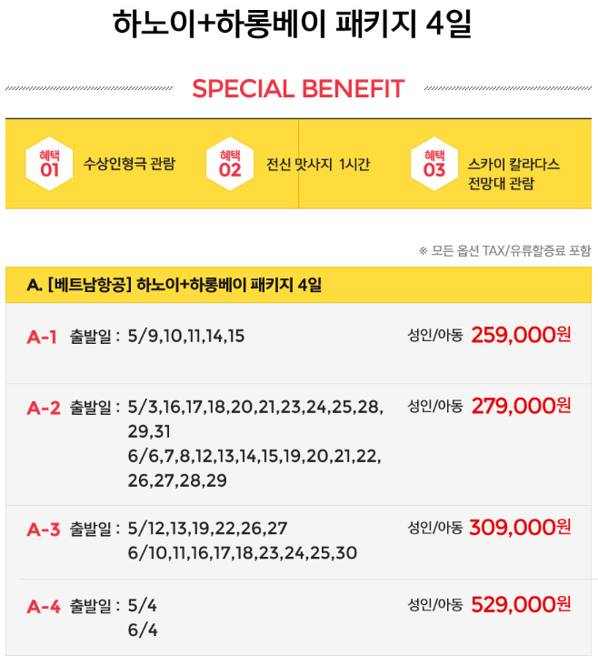 [G9] 하노이 하롱베이 패키지 4일 (259,000~509,000/무료)