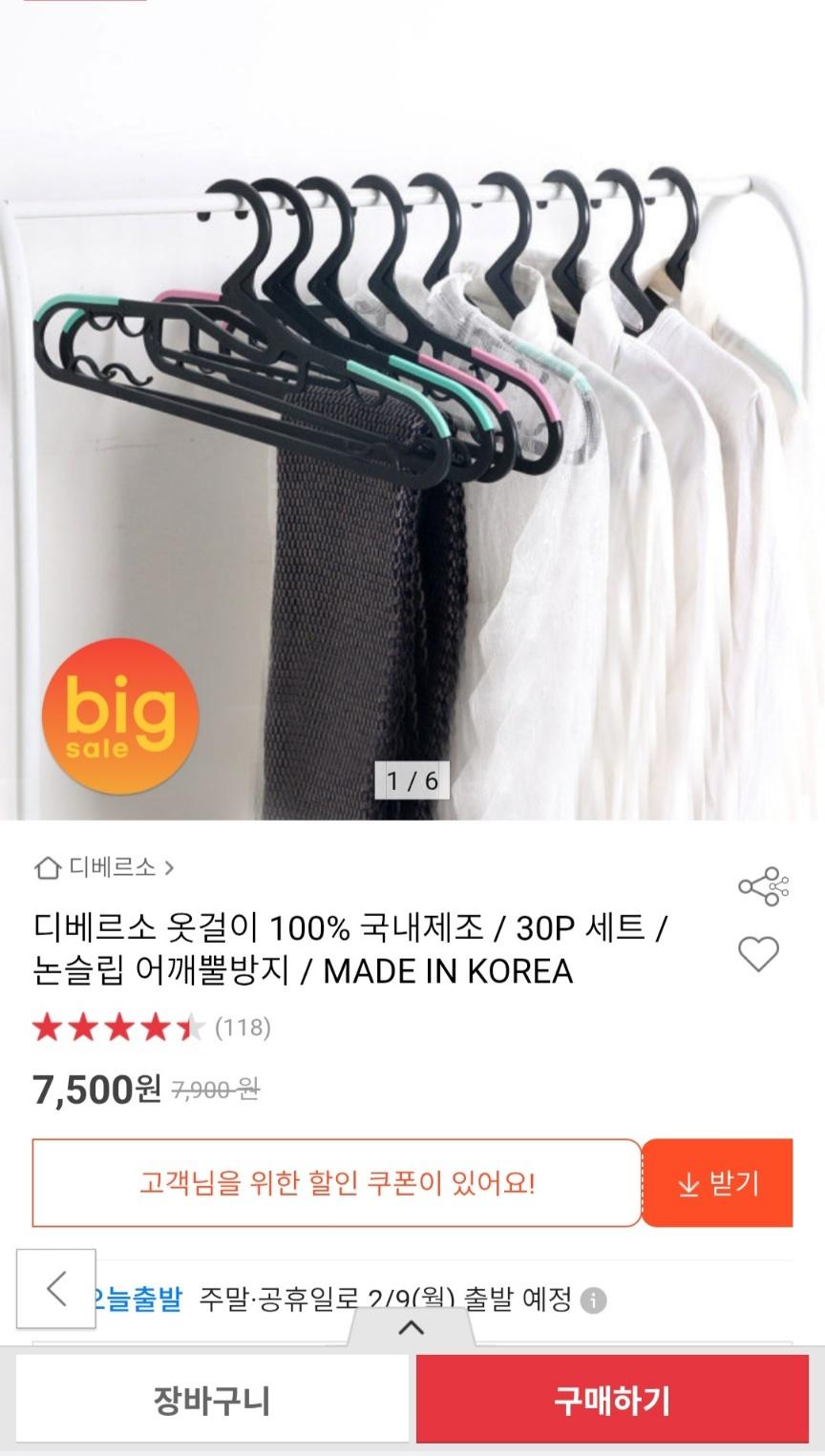 [지마켓] 국산 미끄러지지 않는 옷걸이 30P 세트 7,500원 무료배송 > 국내핫딜