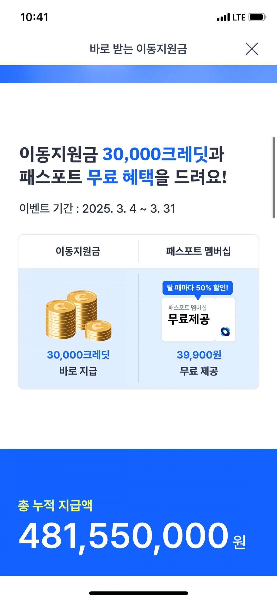 쏘카에서 쏘카 이동지원금 3만원이랑