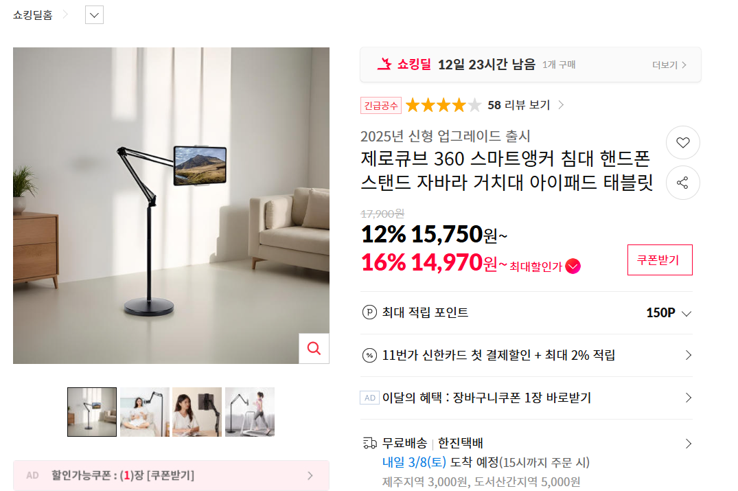 [11번가] 제로큐브 360 스마트앵커 스탠드 거치대 (14,970원 / 무료) > 국내핫딜