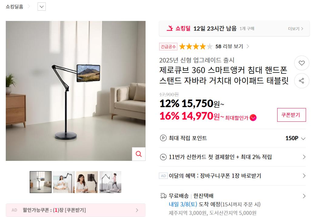 [11번가] 제로큐브 360 스마트앵커 스탠드 거치대 (14,970원 / 무료)