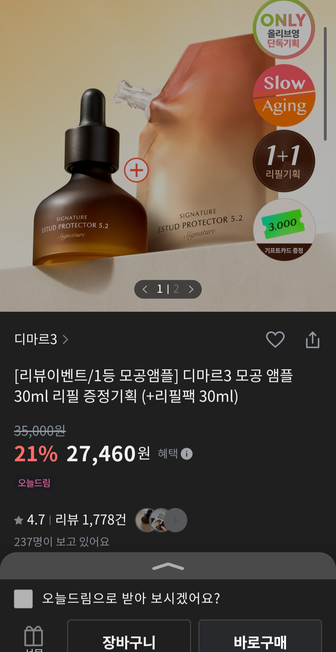 30ml 1+1으로 리필팩 증정해주는데 가격도 상당히 좋네요!!