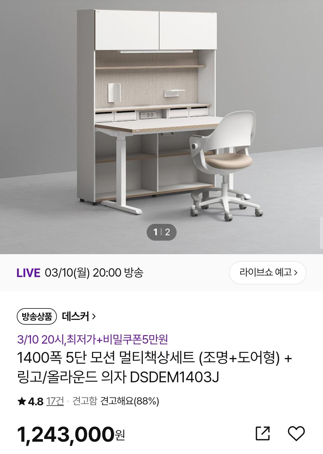 [CJ온] 데스커 1400폭 5단 모션 멀티책상세트+링고/올라운드 의자세트 DSDEM1403J (1,109,490원/무료) > 국내핫딜