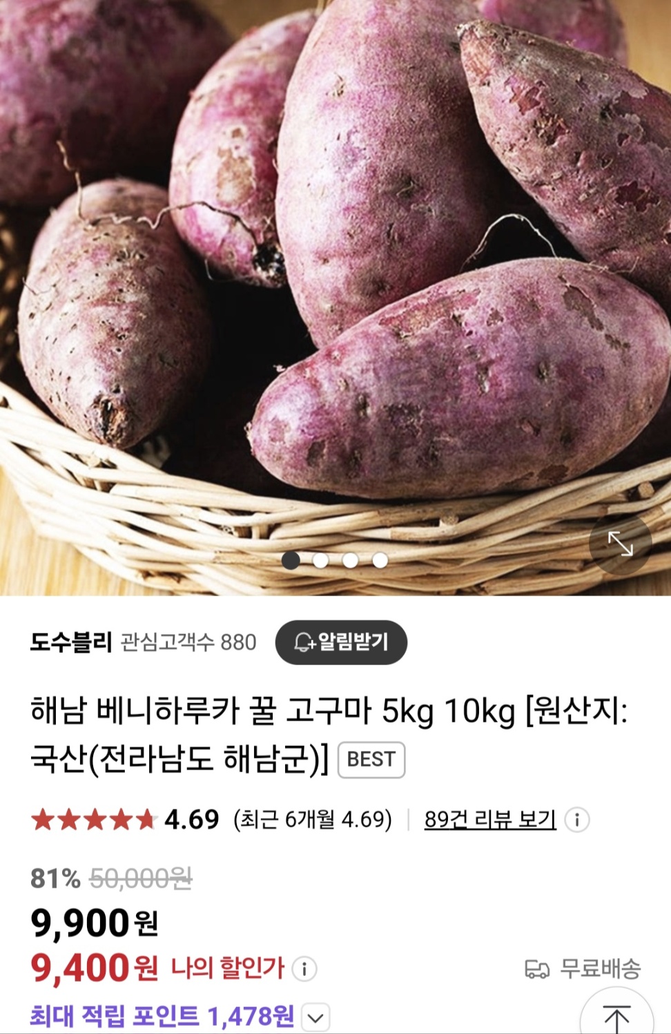 [네이버] 해남 베니하루카 꿀고구마 중상3kg (9,400원/무료) > 국내핫딜