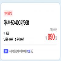 [아시아모바일] LG알뜰폰 5G 400분*9GB (990원/배송비무료)