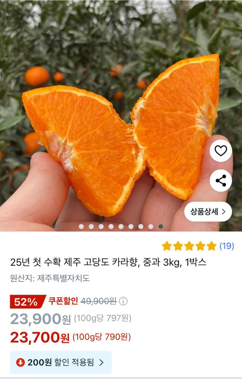 [쿠팡]25년 첫 수확 제주 고당도 카라향 중과 3kg(23,700원/무료) > 국내핫딜
