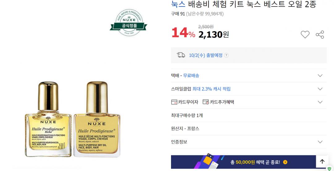 [옥션] 눅스 베스트 오일 2종 체험팩 (2130원/무배) > 국내핫딜