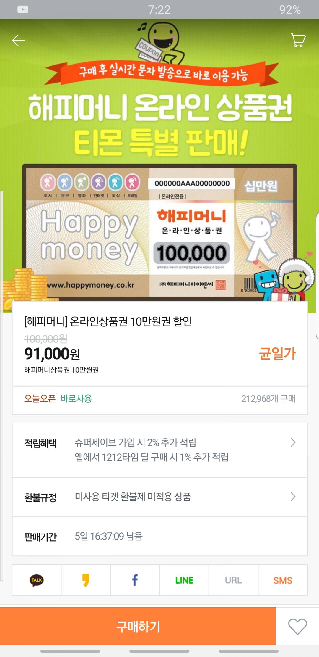 [티몬] 해피머니 상품권 (91000/0) > 국내핫딜