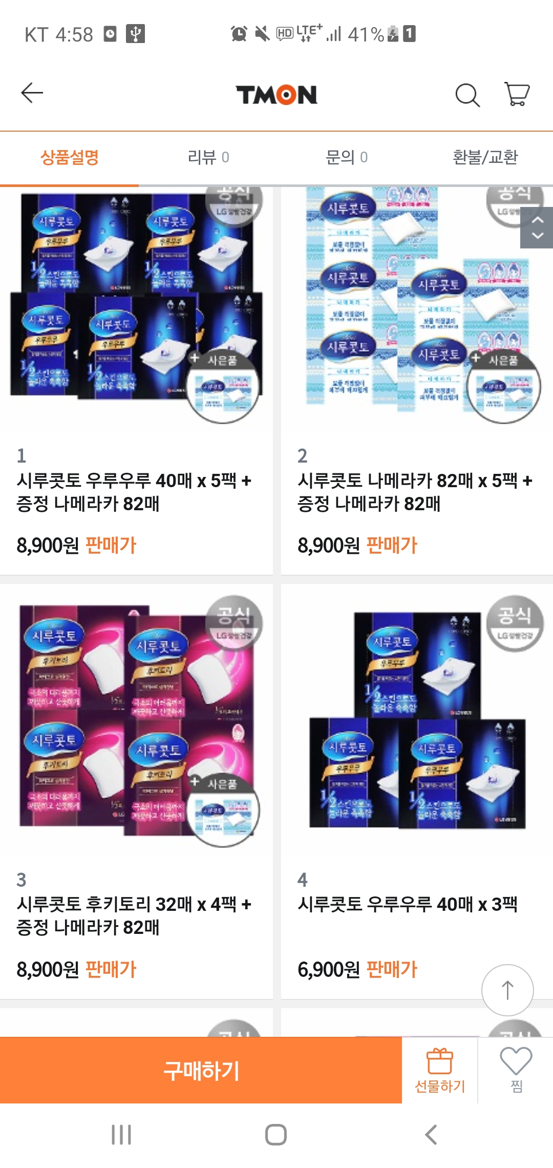 티몬블랙딜] LG생활건강 시루콧토 화장솜 우루우루40매 x 5팩(8,900/무배) > 국내핫딜
