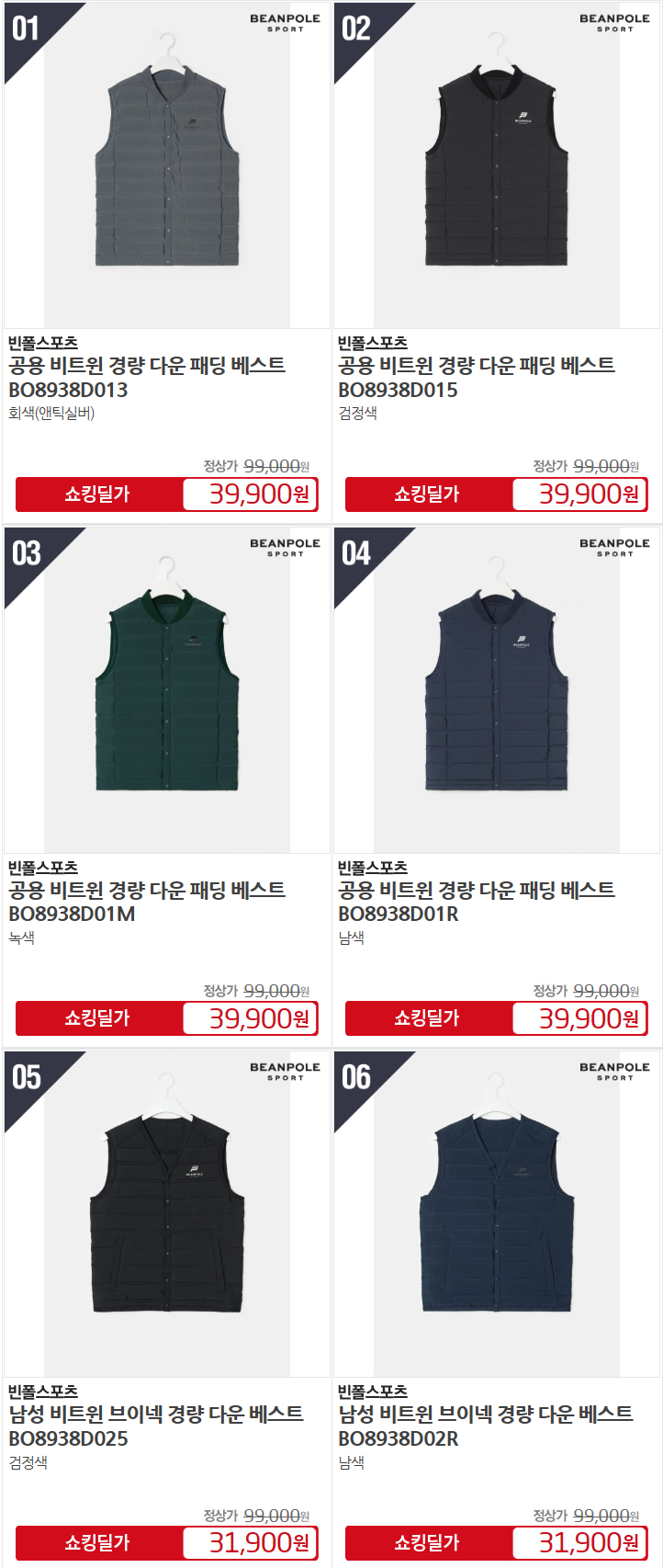 [11번가] 빈폴스포츠 역시즌 경량다운 베스트 (39,900/무료) > 국내핫딜