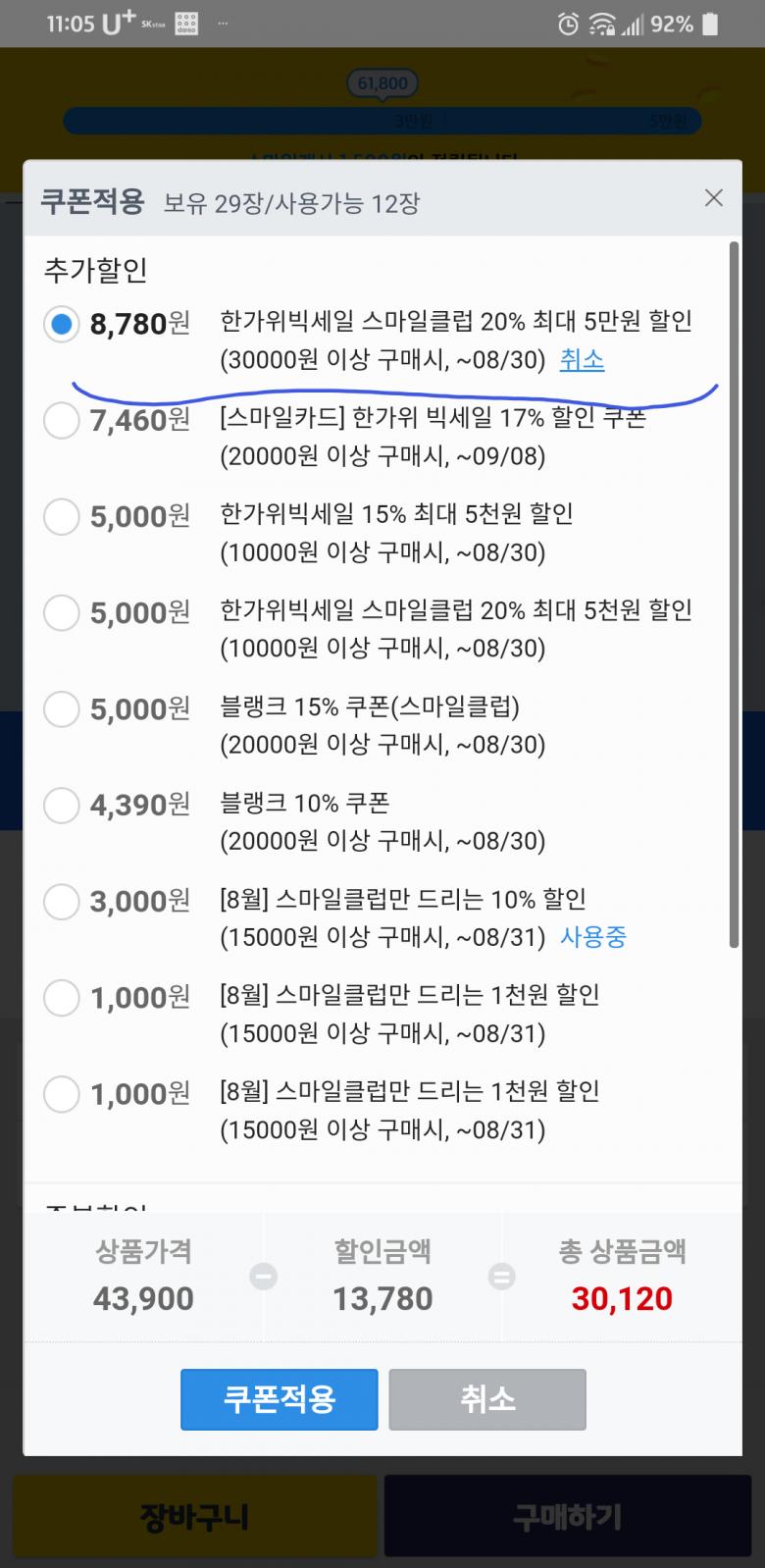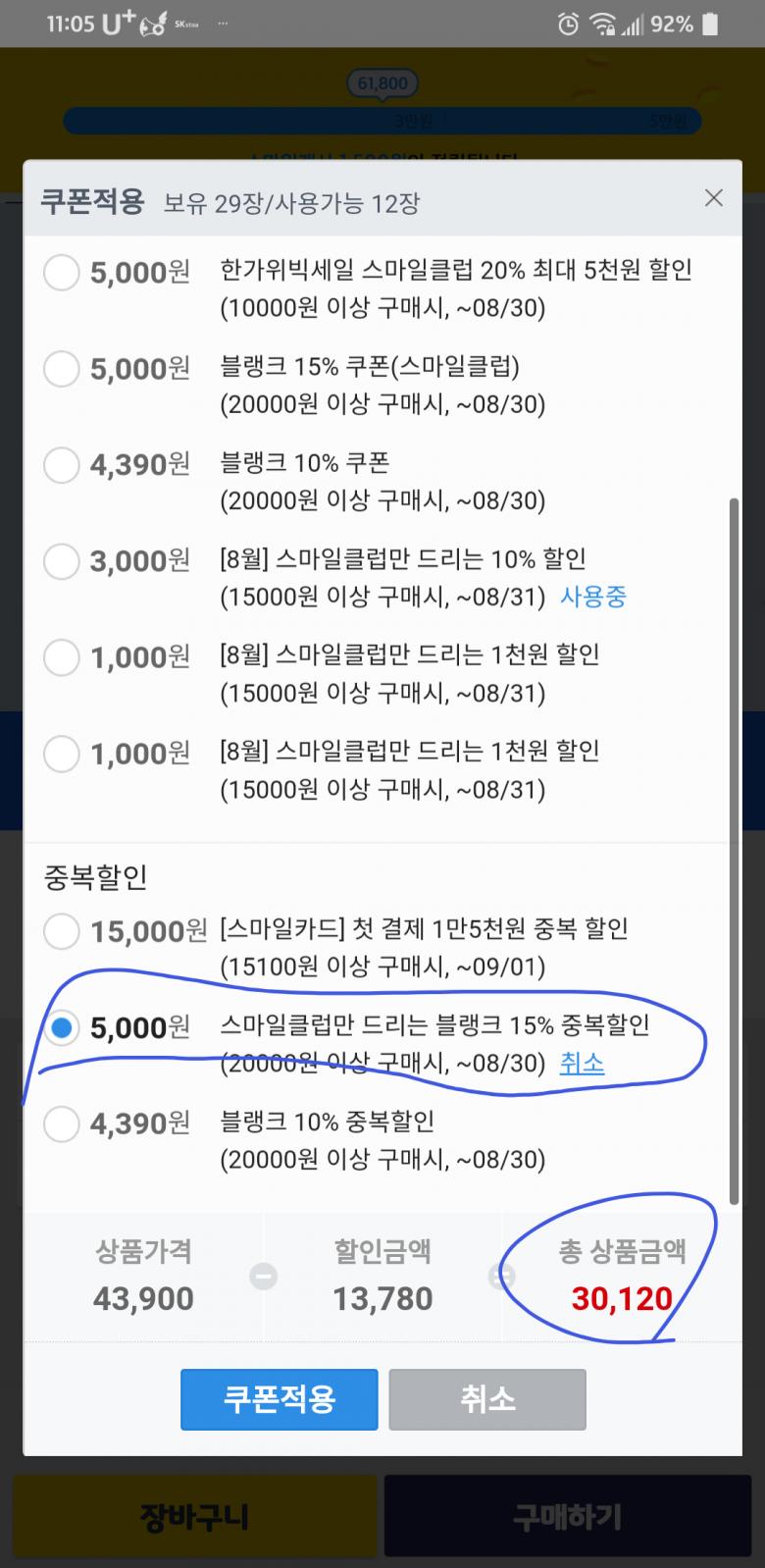중복 쿠폰 하시면 24520이네요. 엄청 저렴한거임...쿠폰 다 받아서 하세요. |