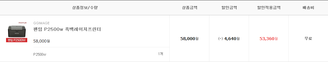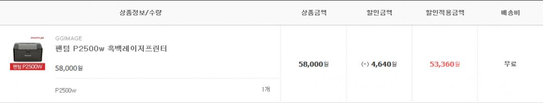 [위메프] 팬텀 P2500w 흑백레이저프린터 (58,000원/무료)