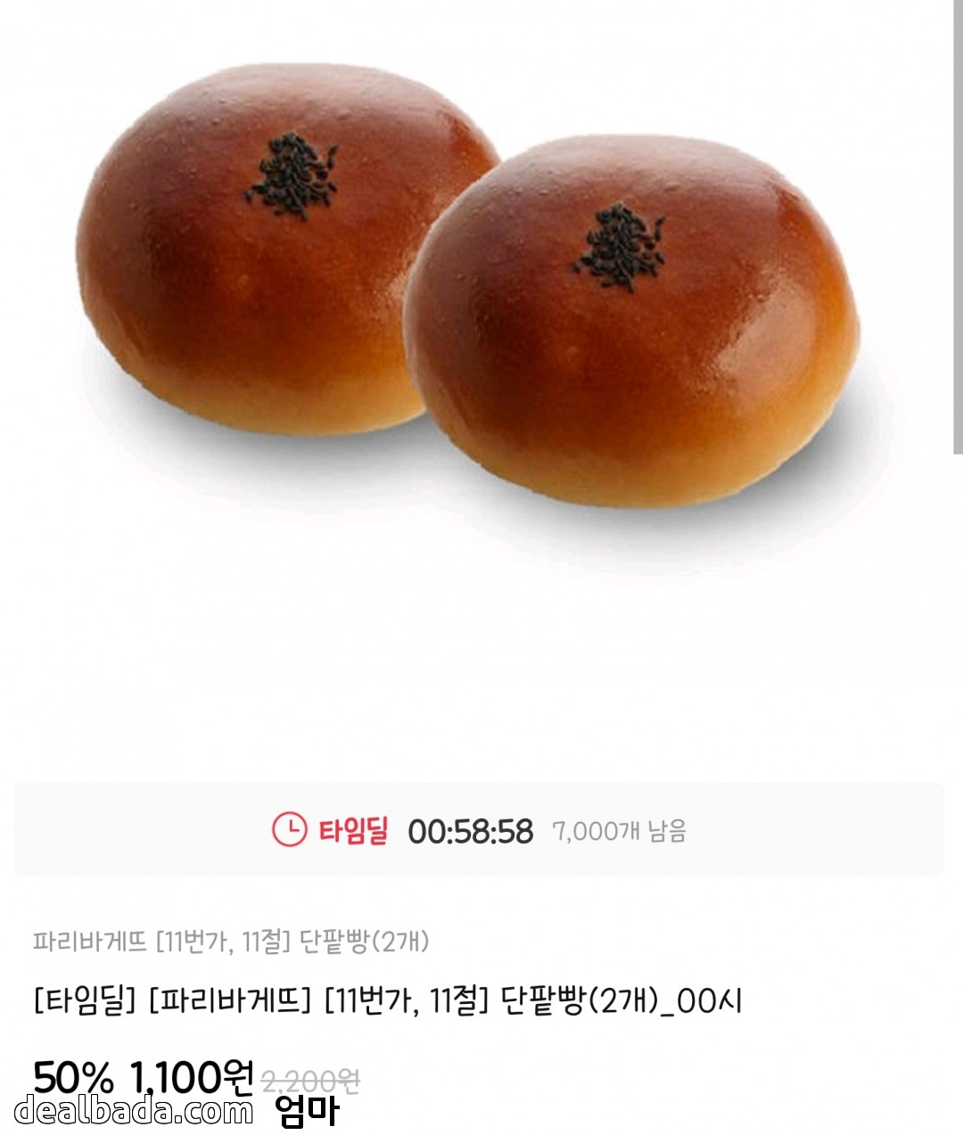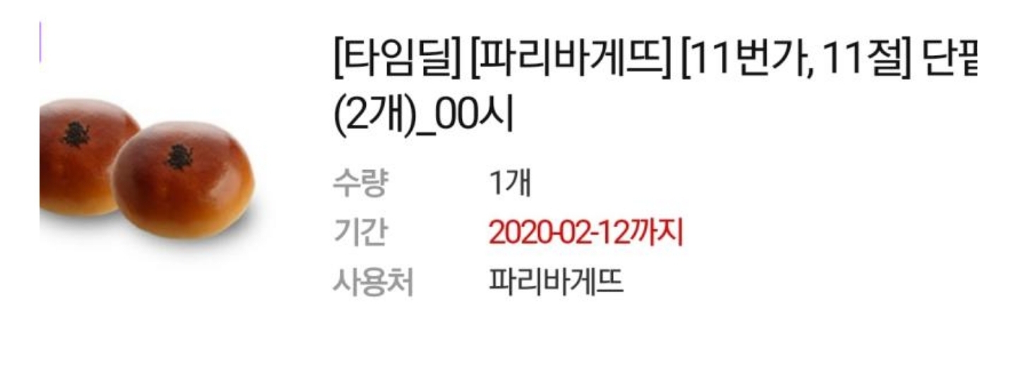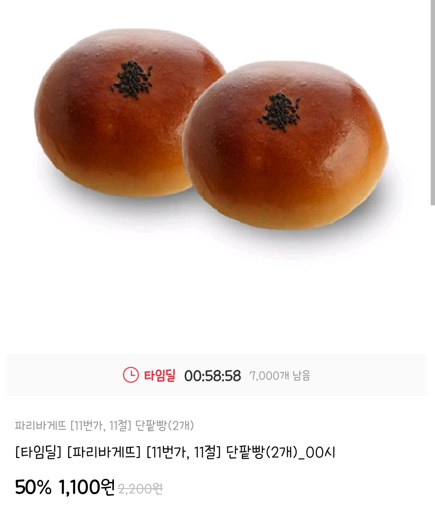 [11번가] 파리바게트 단팥빵 2개 50% (1,100) > 국내핫딜