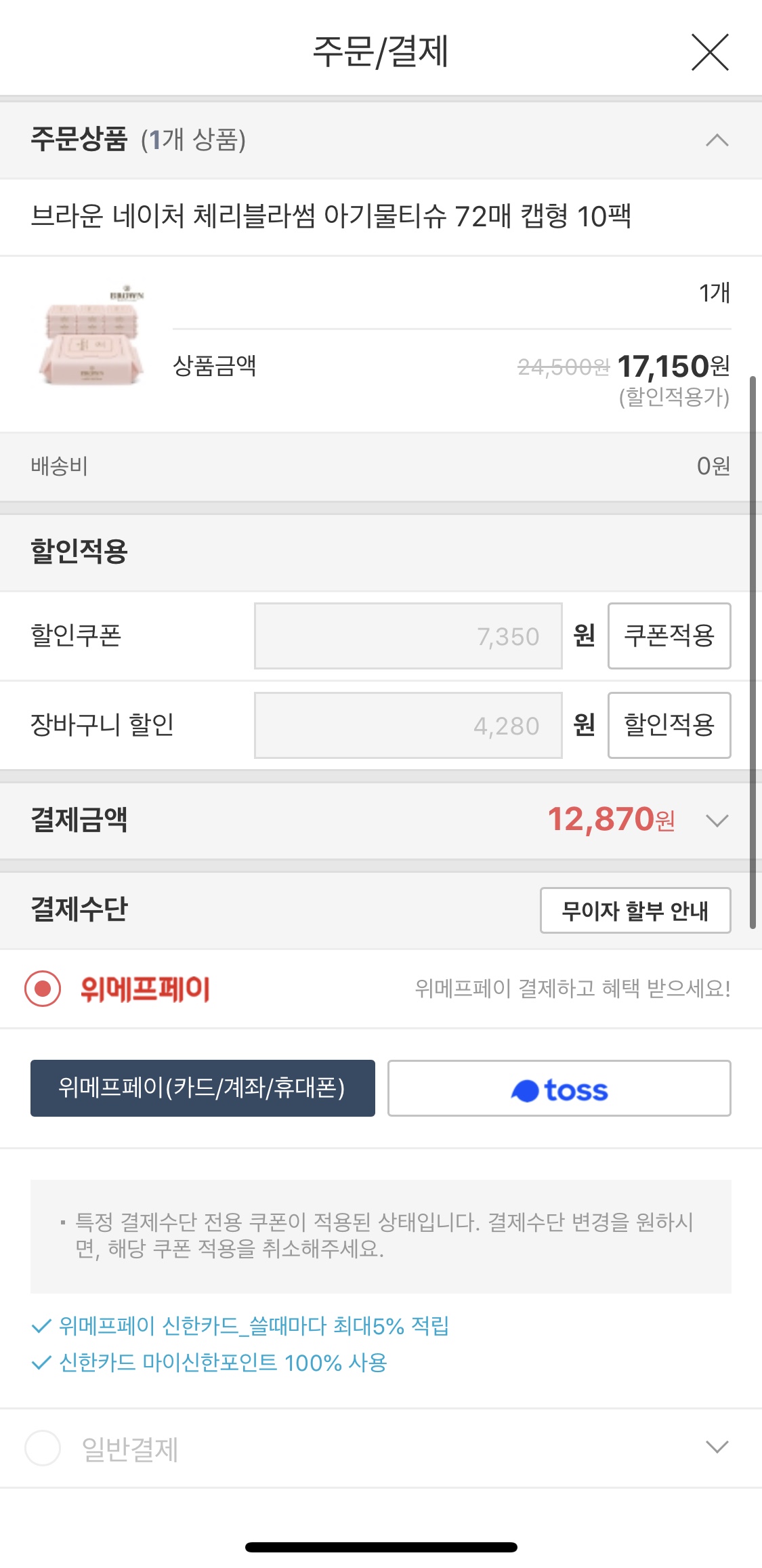 ㅎㅎ 토스어플로 결제하면 최저가 나와요!