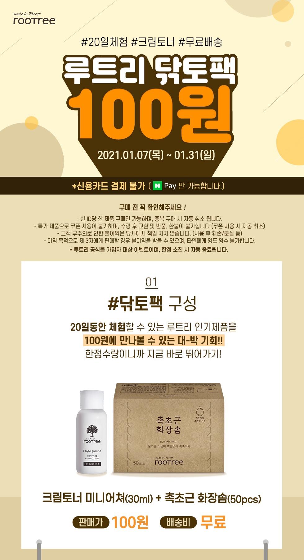 [루트리] 루트리 20일 체험 닦토팩 (100원/무료)