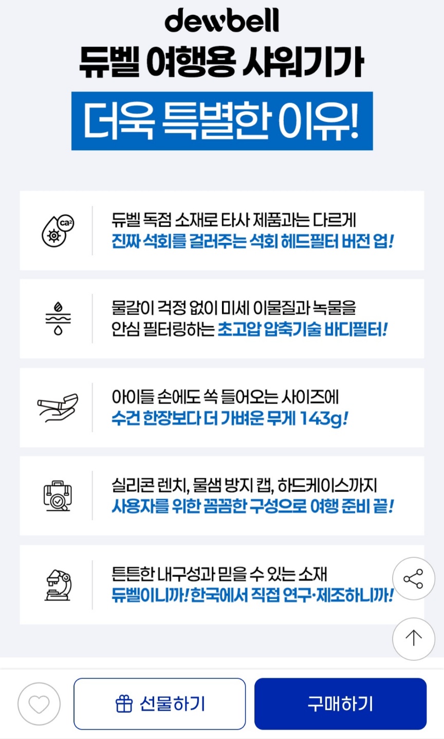 여행 할 때 물갈이하는 분들에게 좋은 여행용샤워기입니다.
