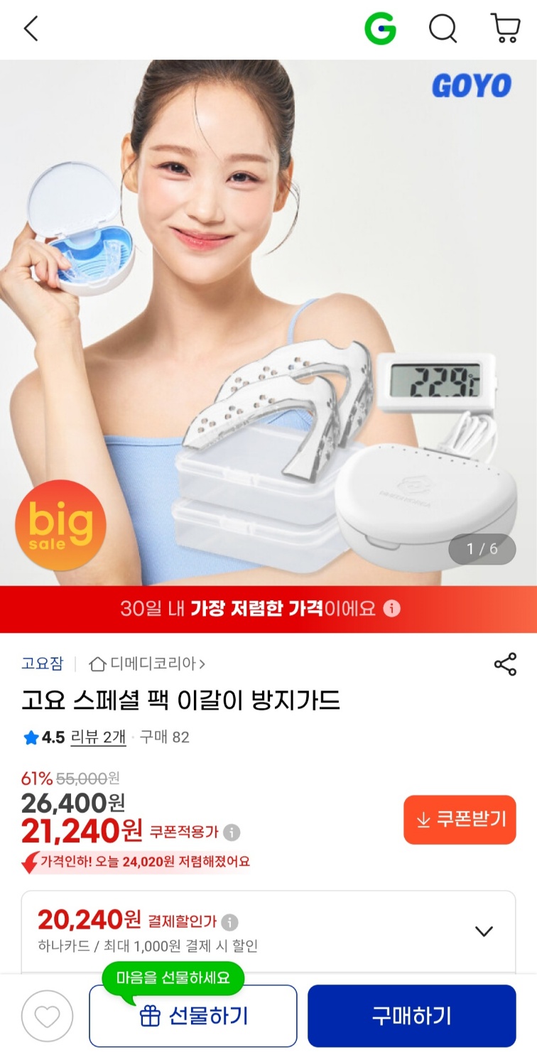 [지마켓] 이갈이 방지가드 (21,240원 / 무료배송) > 국내핫딜
