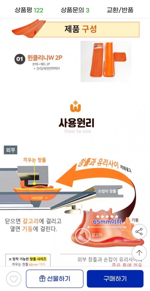 창틀에 끼우고 열고 닫으면 잘 닦여서 편하고 안전합니다