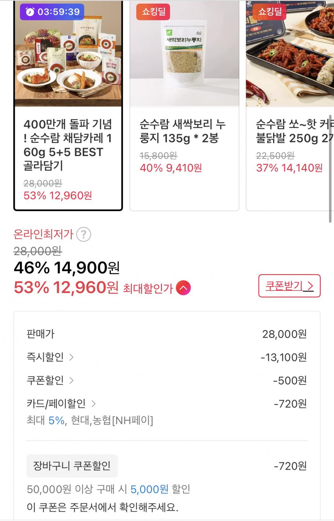 [11번가] 순수람 채담카레 160g 총10개 골라담기 (14,400원/무료) > 국내핫딜