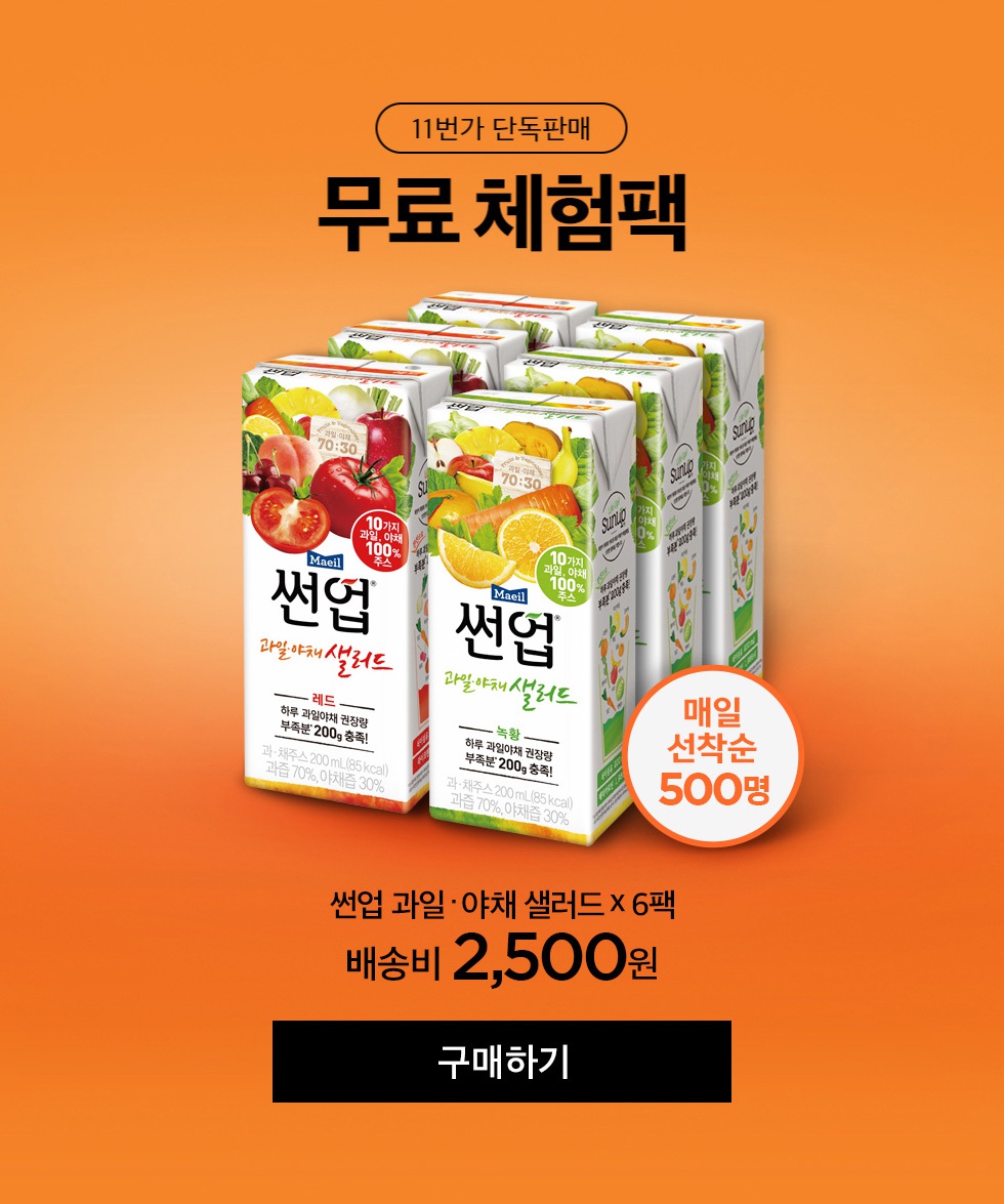 [품절] 매일도전 [11번가] 9시 썬업 과일야채 샐러드*6팩 (2500/0) [선착 500명] > 국내핫딜