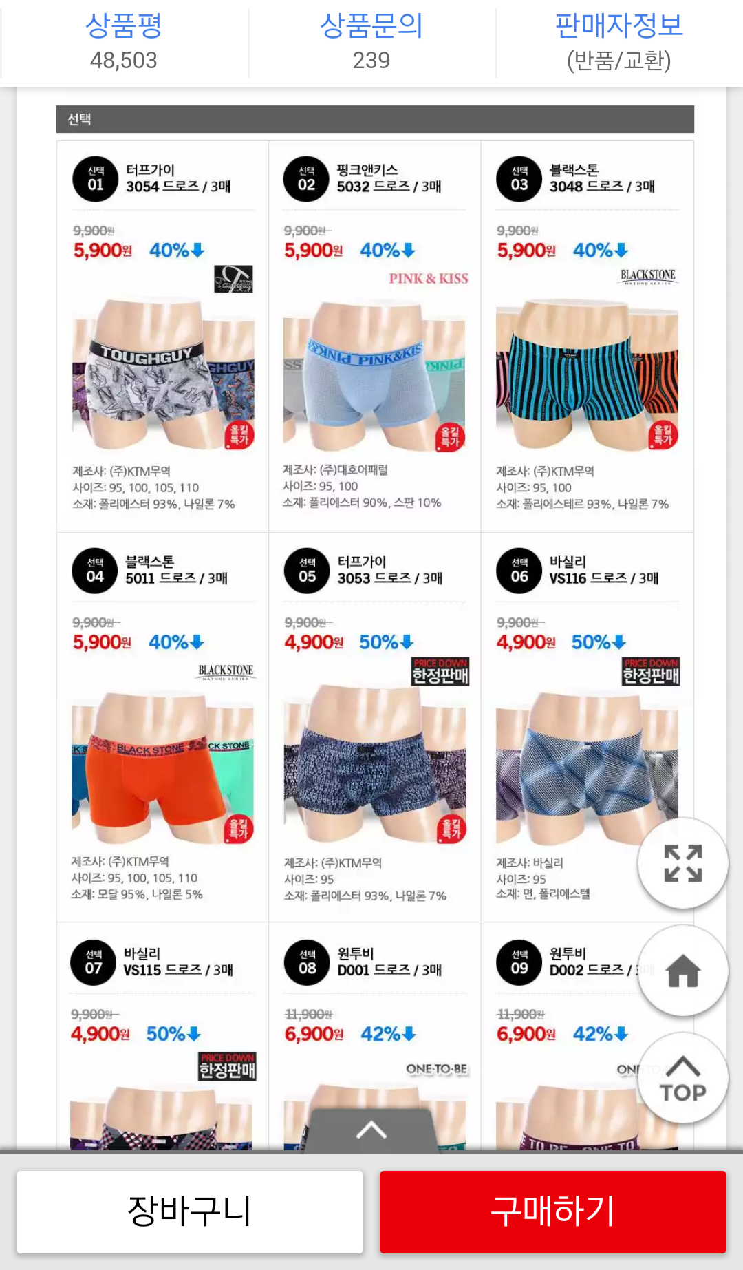 4900짜리는 사이즈가 95뿐이네요