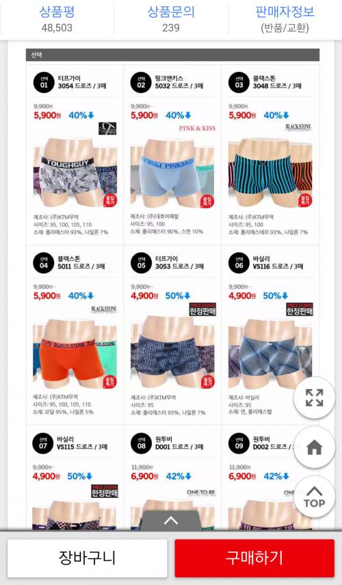 [옥션] 남성 드로즈 3매 5900원종류다양 (5,900/무료) > 국내핫딜