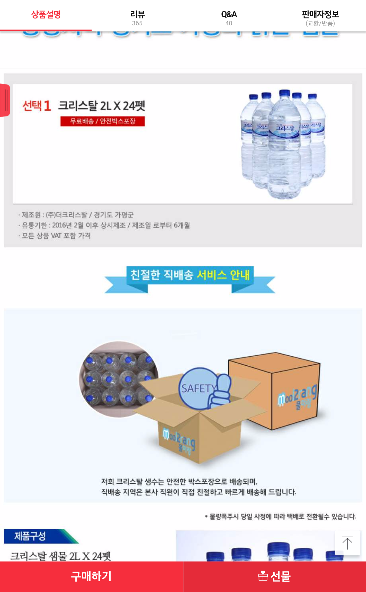 본문의 생수가 괜찮은 것 같아요. 박스포장도 그렇고, 발암물질에도 안전하고요.
