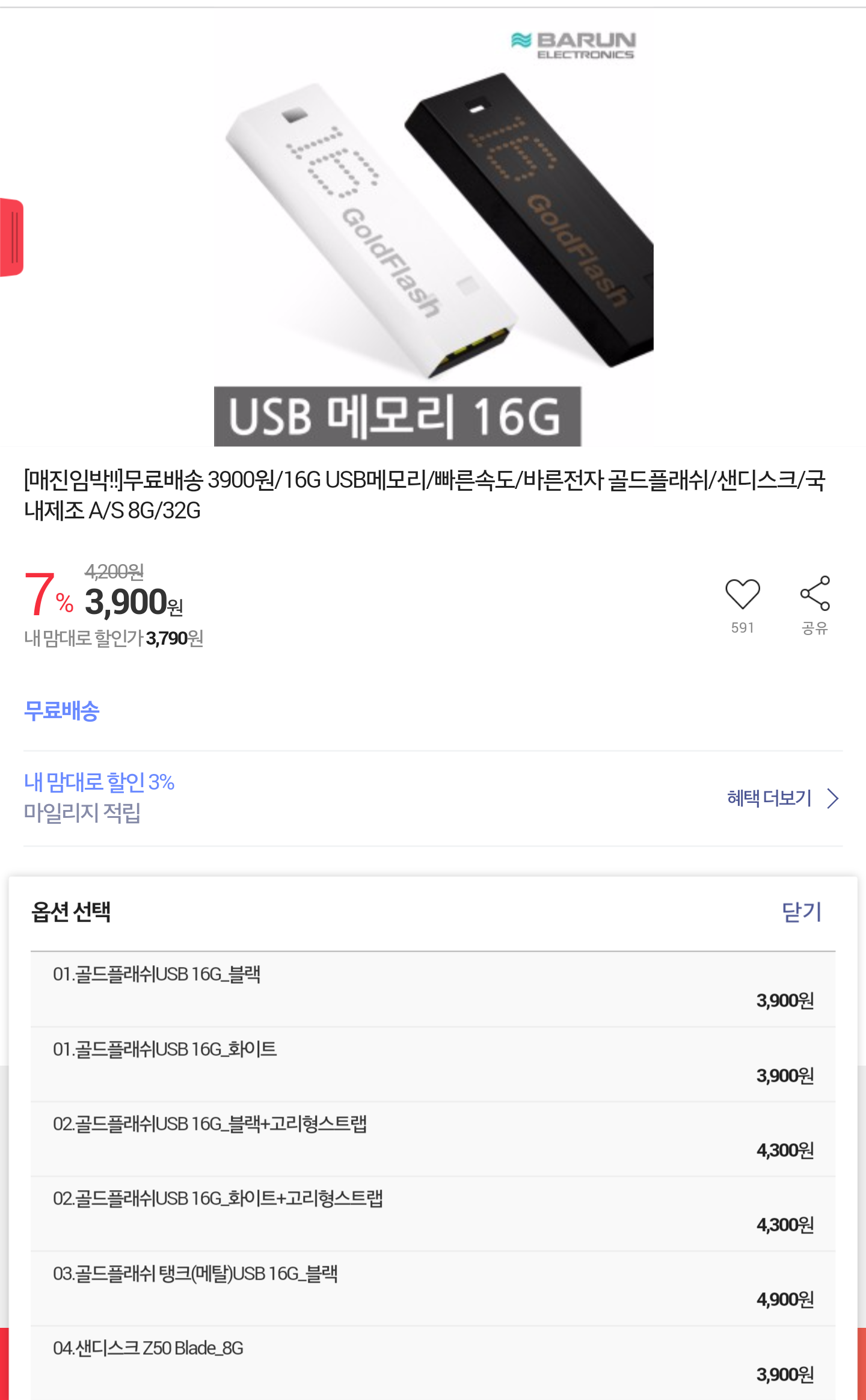 [11번가] 바른전자 USB메모리 16GB (3,900/무료) > 국내핫딜