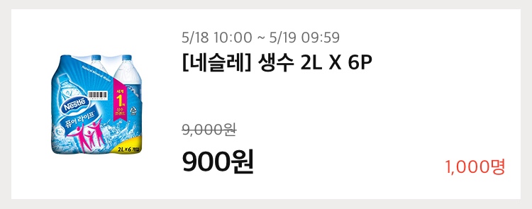 매주 수요일 생수900원딜이구요 선착 1,000명입니다