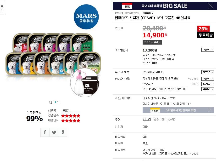 시저캔... 아이들 몸상합니다. 차라리 생식용으로 생닭을 주시는게 100배이롭고..저렴합니다 캔을주시려면 네이처스버라이어티사의.인스팅트나 지위픽캔 최소한 네추럴발란스(별로추천은안드리지만.ㅡ)급여하셔야합니더. 싸다고 잘먹는다고 원재료원산지제조일 무엇하나 명확하지않은 중국산의.대표적 안좋은 애견사료입니다. 건사료로비유하자면... 10킬로에 만원짜리 진도사료정도보다 못합니다. |