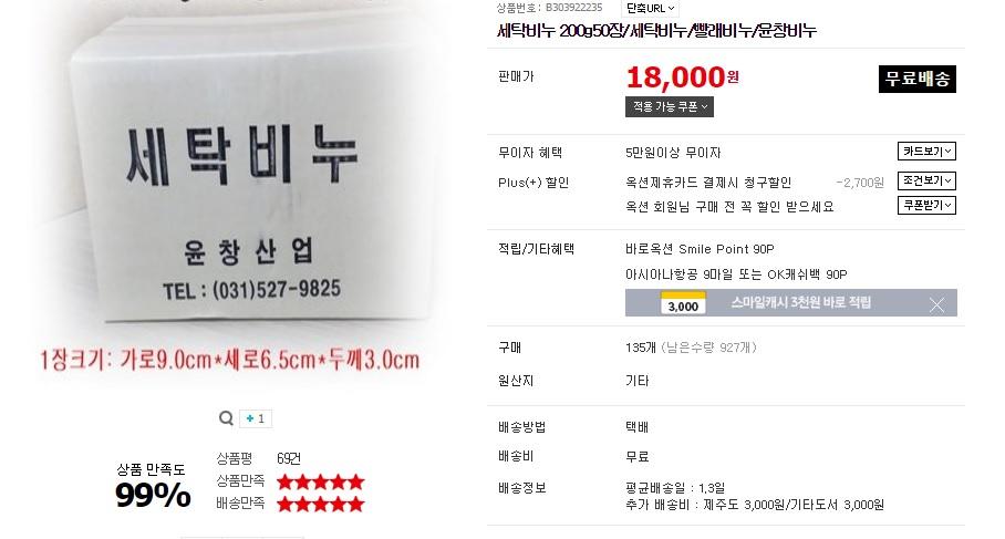 다른건 36장에 16000원정도 하더라고요.. 최저가로.. (개당 450원정도)