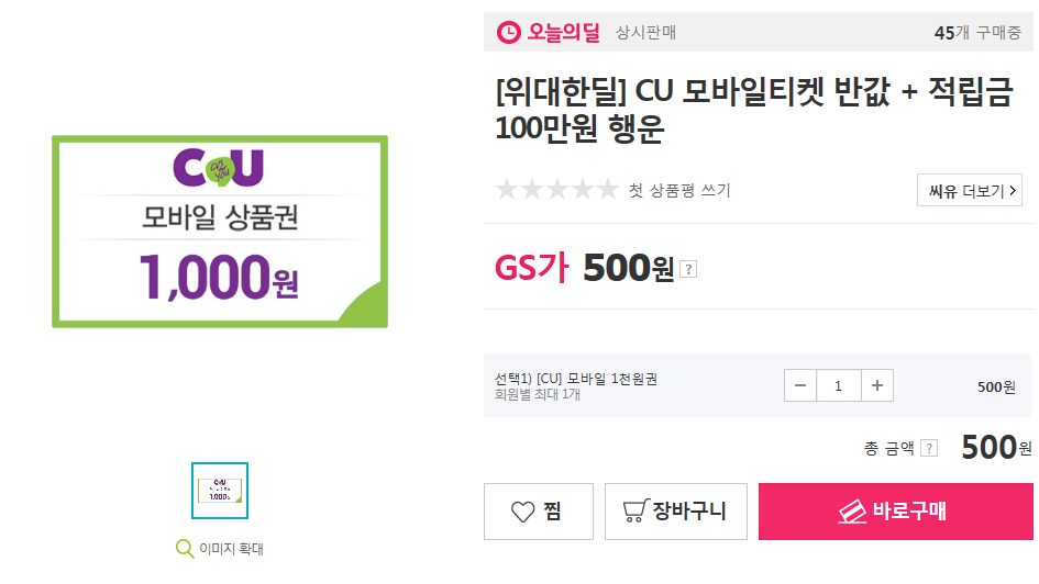 아..몇일전 GS25 1천원권 끌올인가했더니 CU꺼고 구매 가능하네요.ㅎ 그냥 지나칠뻔 |