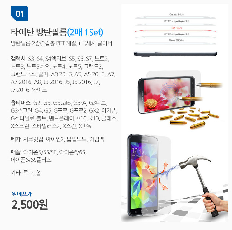 [위메프]타이탄 방탄필름 2장 (2,500/무료배송) > 국내핫딜