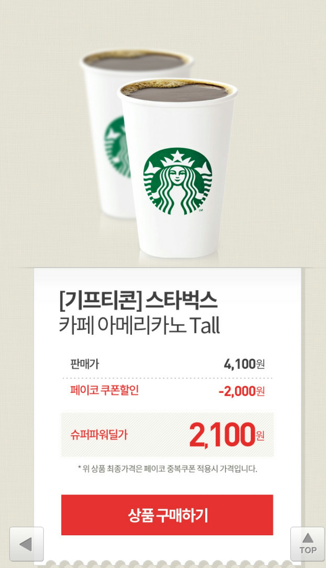 스타벅스 2000원 할인 쿠폰 받고 페이코 결제시 적용