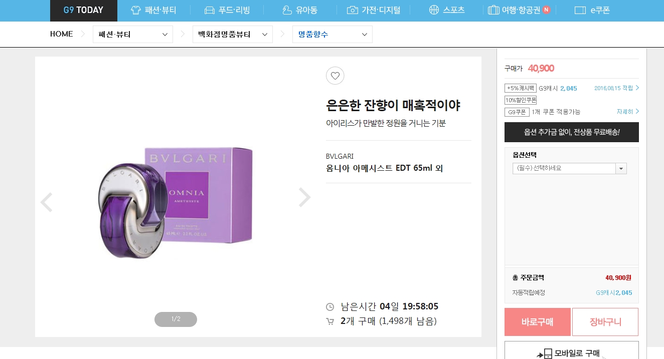 더운 여름 땀냄새 때문에 고민중 향수를 찾아보다 올리네요.어릴때부터 써오던 제품이라 불가리를 찾다가 최저가