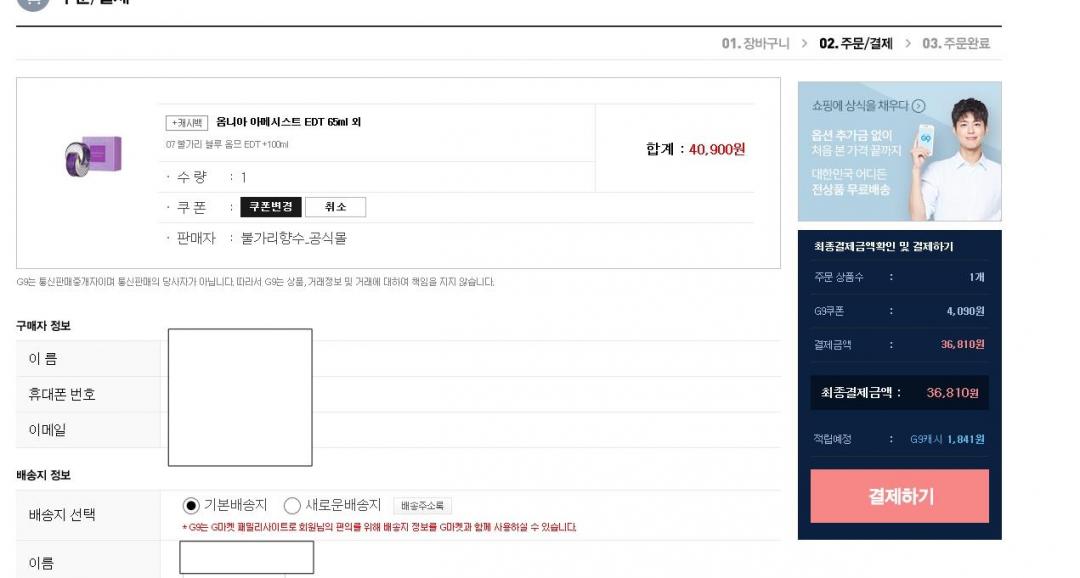 불가리 블루100ml를 사려고 하니 기본 상품가격 40,900원 - 쿠폰 10%(4090원) - 적립금 5%(1841원) 해서 실제 가격은