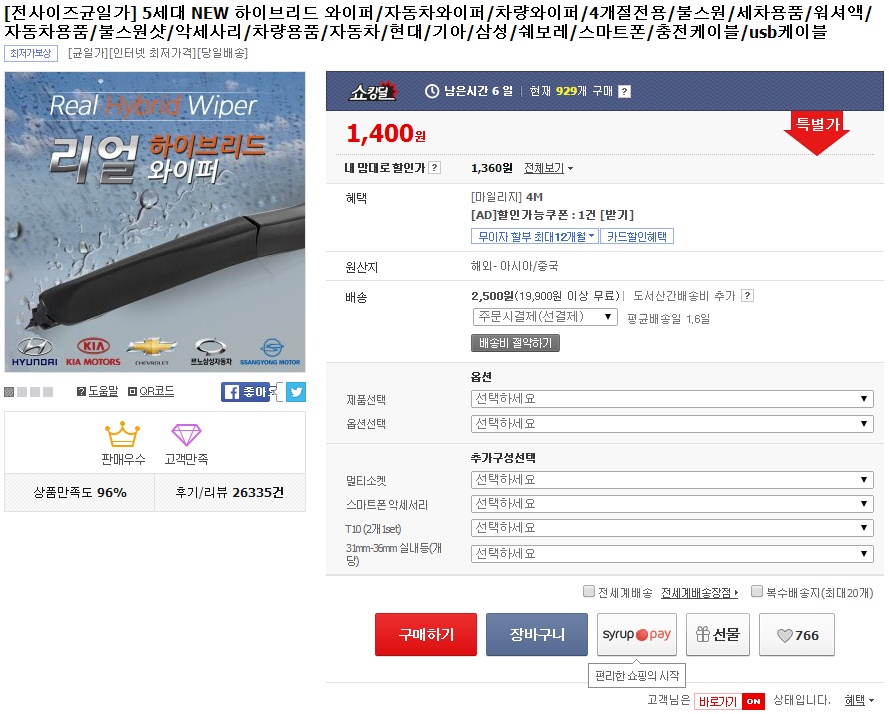 본김에 저도 두세트에다 워셔액까지...주문 했습니다 | ||