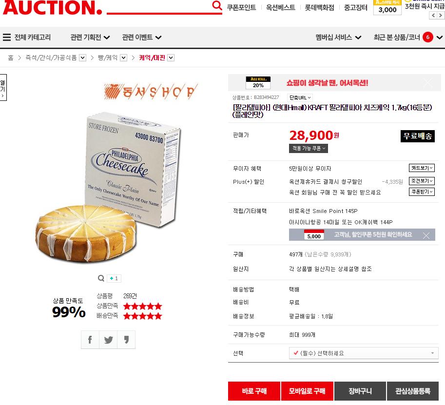 보통 800g짜리 필라델피아 치즈케익 잡다한 사은품 끼고 15000원 선에서 구매하시는데