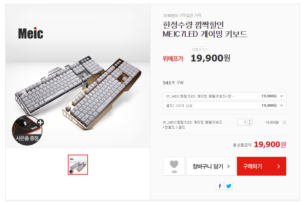 [위메프] MEIC 7LED 게이밍 키보드 (19,900/2,500)