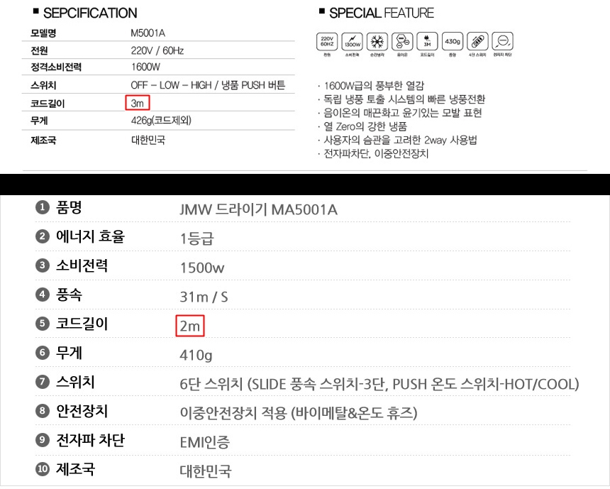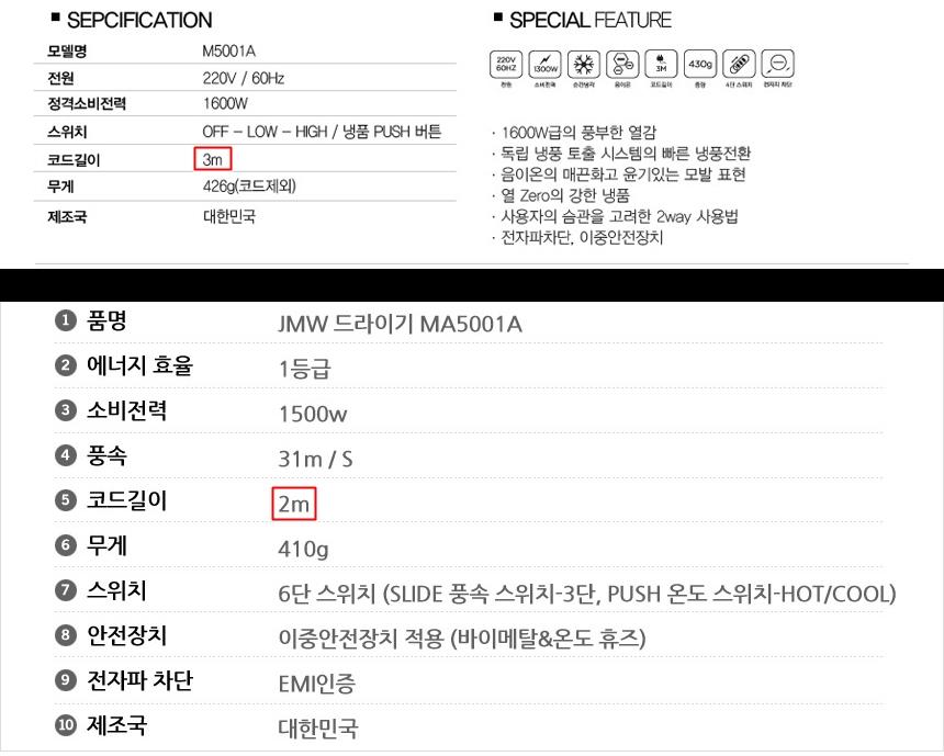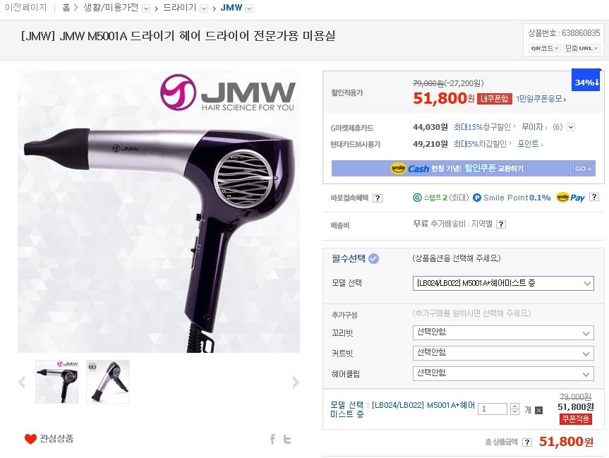 [옥션][지마켓] JMW M5001A 드라이기 (51,800/무료) > 국내핫딜