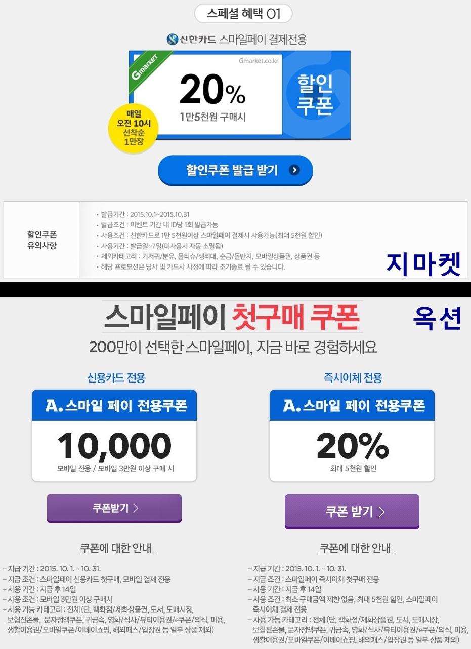 지마켓 스마일페이 1만5천/20% (최대 5천원 할인) - 매일 오전 10시 선착순 1만명 :