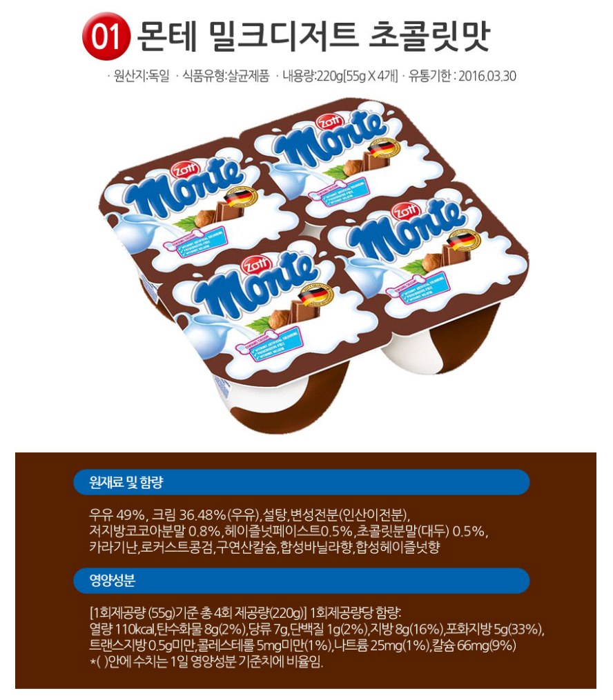 (종료)[옥션] 몬테 떠먹는 우유 4입 (2,500/무료) > 국내핫딜