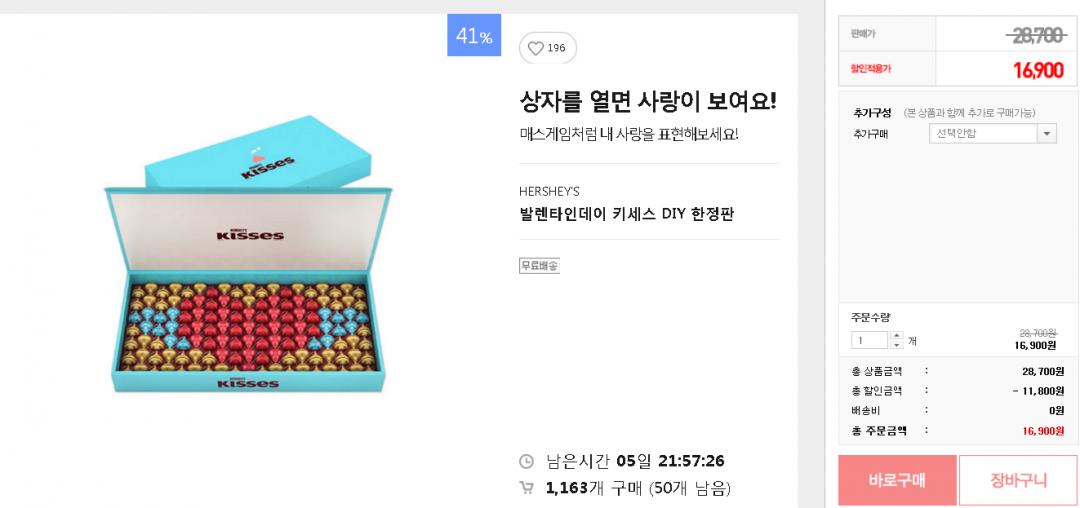 [G9]발렌타인데이 한정판DIY/허쉬 키세스 초콜릿(각각다름/무료) > 국내핫딜