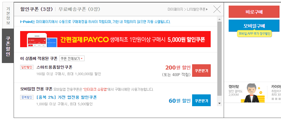 200원, 60원 쿠폰 장 받으세요